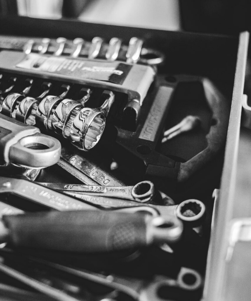 Icon of a wrench and gear representing certified mechanics at Ali's Engine Room.